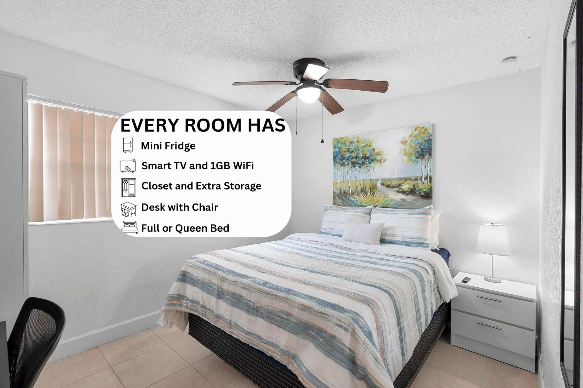 🚨EARN FREE WEEK🏡Remodeled, Spacious, Safe Home in SANFORD 🚌 Minutes walk to bus 🚗 Minutes to I-4 Highway ✨🛜FREE 1GB WiFi, Utilities, Laundry, Parking 🧹Cleaning ⭐ Each Room Has: Mini-Fridge, Smart TV, Closet w/ Drawers, Desk & Chair