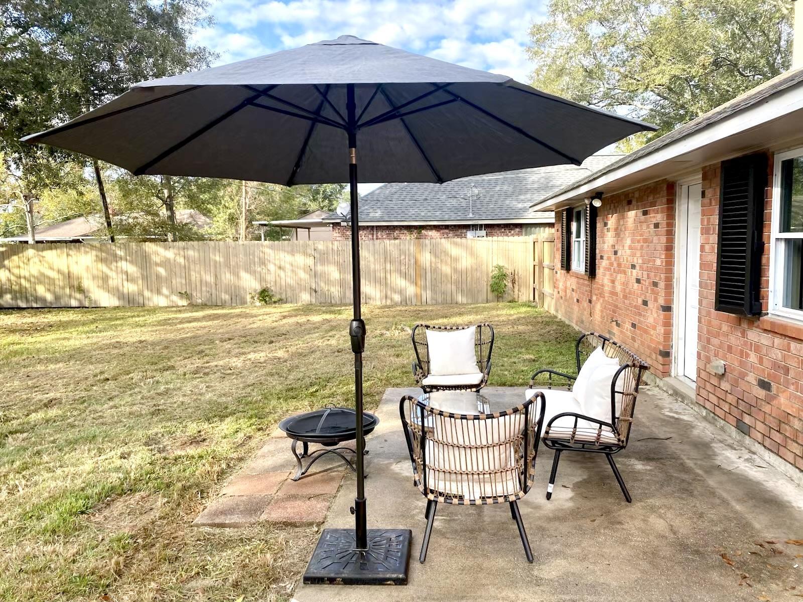 Welcome to this cozy 5-bedroom residence 🏡, perfect for your stay in Hammond, LA, located in a peaceful neighborhood with easy access to local amenities. This property features private rooms equipped with coded locks 🔏, comfortable cooling memory foam mattresses, and dedicated workspaces. Two full shared bathrooms 🚻are available for use. On-site laundry 🧺 facilities are also provided. The back patio offers a charming outdoor space complete with seating and an umbrella. Enjoy a soothing atmosphere throughout the house, accentuated with mid-century modern design.
