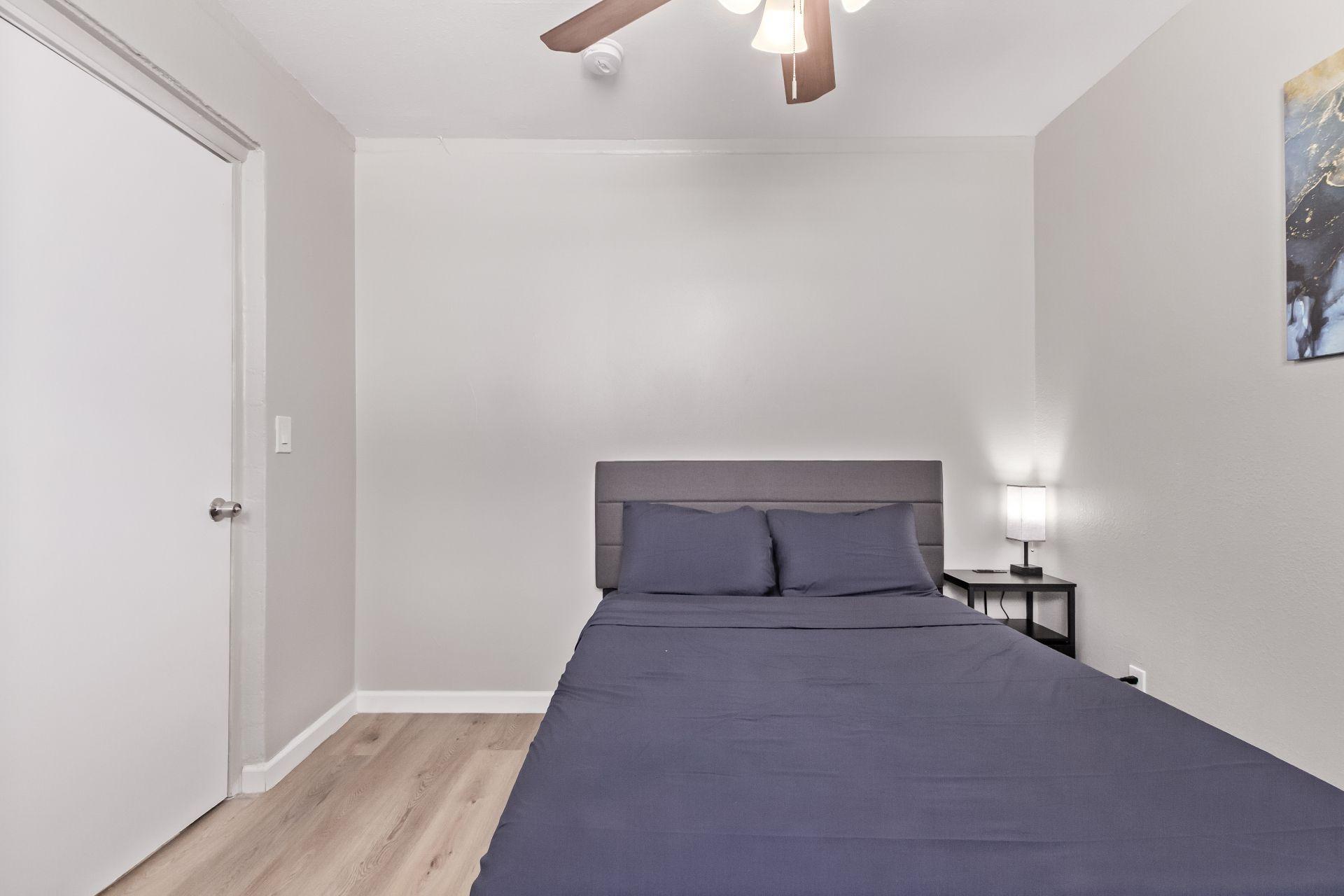 What can I bring?Enjoy comfort and style in this spacious 130+ sq ft room featuring a brand-new bed with a green tea memory foam mattress, USB & electrical outlet equipped nightstand and lamp, sleek desk with drawers, ergonomic chair, full-length mirror, and a roomy closet for all your storage needs. Plus great AC!