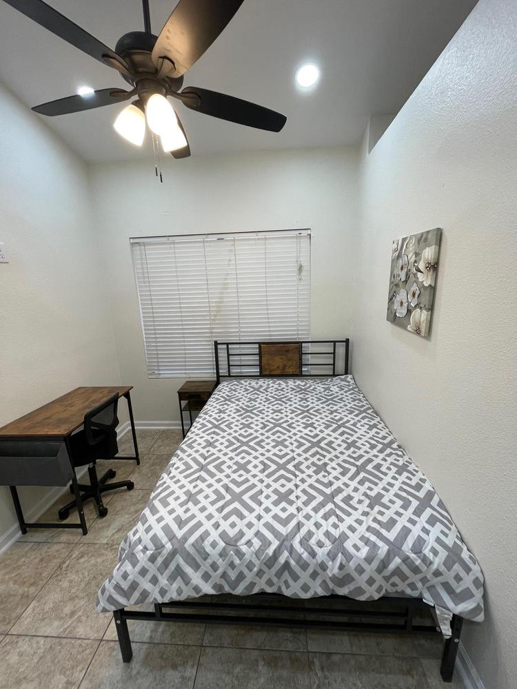 Bedrooms have smart locks with personalized codes, a full size bed, a mini fridge (7.5 or 3.2 cu. ft. in most), nightstand with charging station, work desk with chair and most rooms have oversized closets for extra storage space, and a washer & dryer in the house for convenience. The kitchen comes equipped with a fridge, sink, oven, stovetop and microwave, making it the perfect spot to whip up a meal or two. This home has plenty of parking spaces and is walking distance (2 blocks) from almost everything you need for comfortable daily living. The neighborhood is quiet and conveniently close to Frys grocery store, fast food, shopping centers, busses and close to the I-17 highway. Professionally managed, monthly cleaning of the common areas, bathrooms and landscaping upkeep. Bed linens are not provided so please bring your own. Only one occupant allowed per room. Note: Please park in accordance with all City of Phoenix rules & regulation as Host not responsible for vehicles.