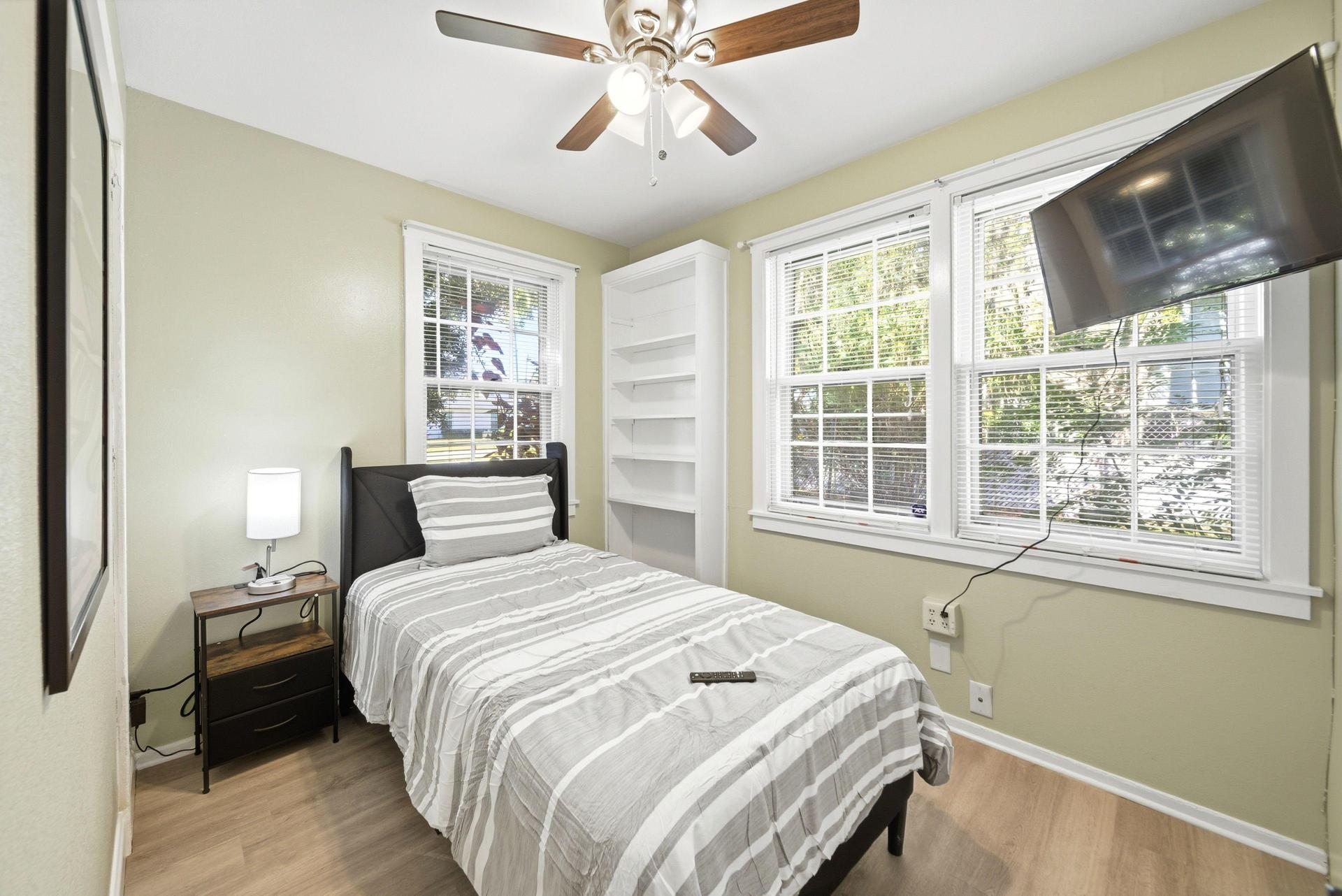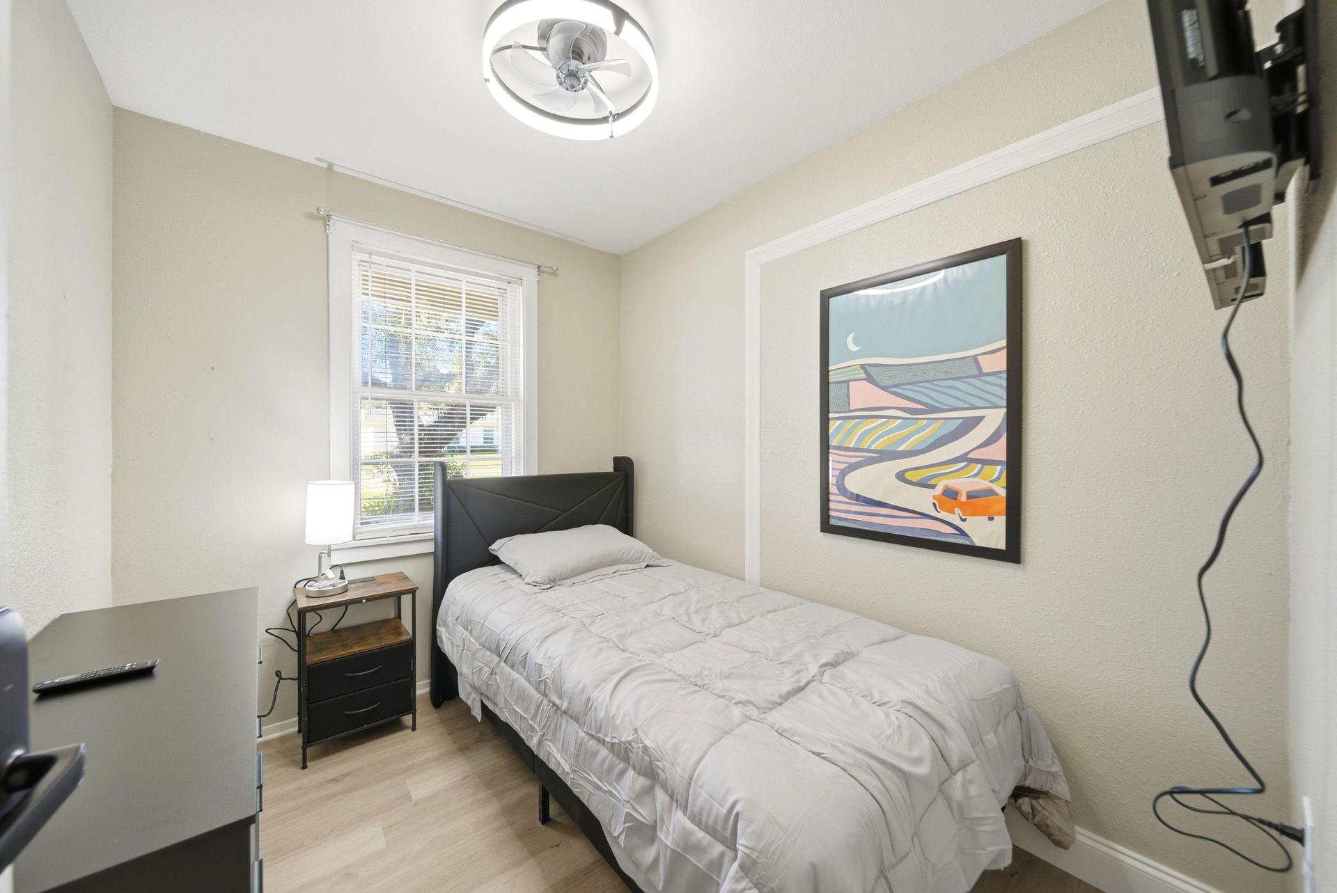 Downtown! 🚀Wifi 4K TVs, 2 KITCHENS, 💎Super Luxe Beds 🏆100% Super Host. -Small but high QUALITY room is also our Least expensive in Property. No move in Fees And some rooms on sale! NOT your average Pad Split. Luxury professional-oriented unit has it all in Heart of City. Some highlights include 2 full kitchens, Lightning Fast Internet, and big back yard WITH STORAGE. You are sure to Rest well with Top-of-the-line mattresses, (and linen included) and 2 water heaters to ensure a Hot refreshing shower in the morning. Move into a modern House today! Some rooms features PRIVATE mini-fridges, and Large 4K tv’s with all streaming Services. Your new home awaits! This beautiful Deland home is waiting for you. The kitchen comes equipped with a fridge, sink, oven, stovetop,microwave, as well as upgraded appliances. Located just minutes walking distance to the best coffee, shops, bars, and restaurants. Looking for COURTEOUS and Respectful guests only, to Share and Enjoy all this property has to offer…