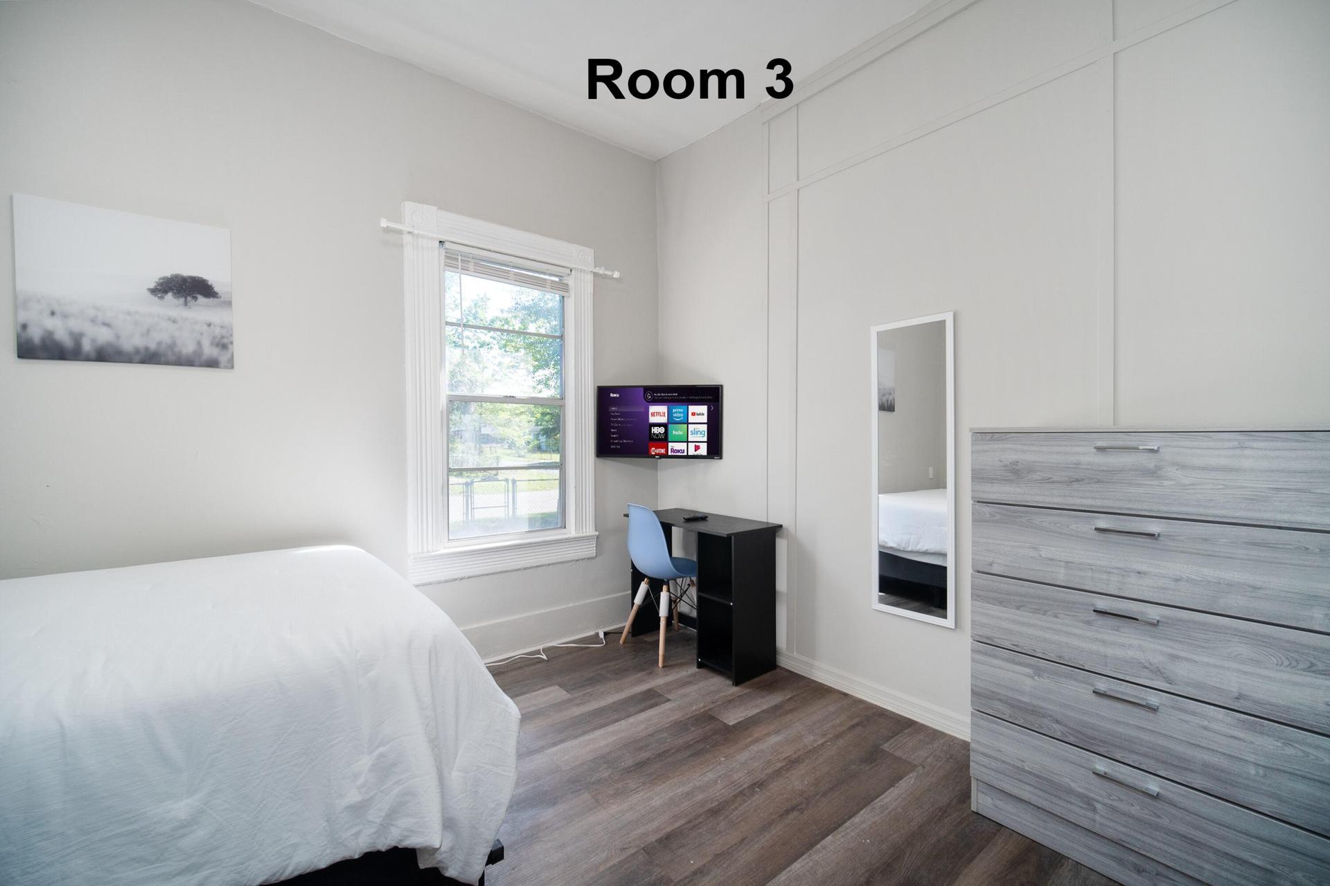 Your new home awaits 🔑✨🏠 All rooms include wall mounted Smart TV’s 📺 and high speed internet! ♨️♨️🛜This newly-renovated Jacksonville home is waiting for you. This PadSplit has a Backyard and Dining area, and it’s comfortable and spacious. ✨✨✨The kitchen comes equipped with two refrigerators, sink, oven, stovetop, as well as basic cookware.✨✨✨ The neighbourhood is near grocery stores, and a public bus stop, which means you won’t be far from all Jacksonville has to offer. 🚎 🛒