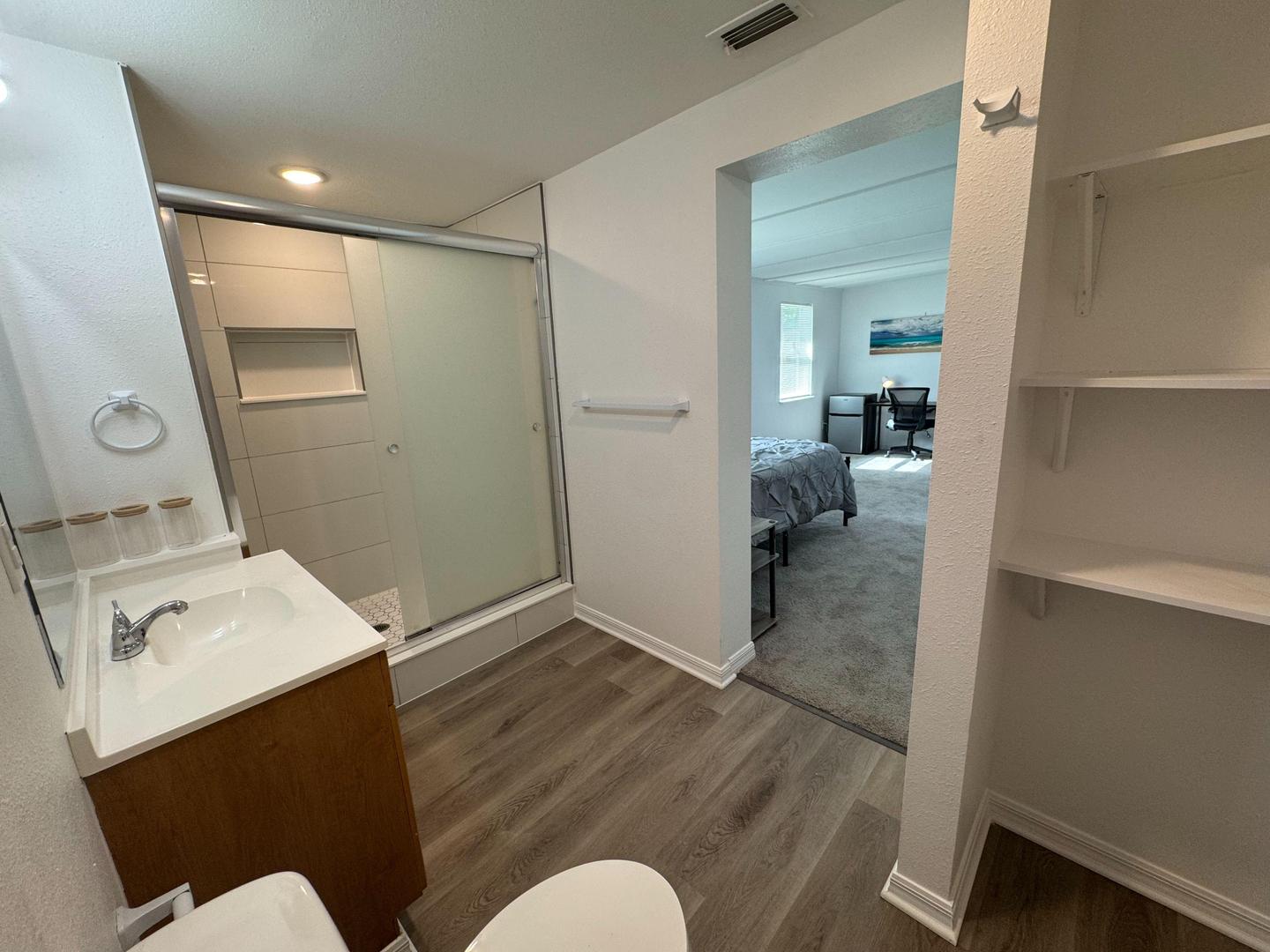 Your new home awaits! 2 of the rooms have private entrances and private bath. 1 full suite available with a big screen, private lounge area and refrigerator. This comfortable Lakeland home is waiting for you. This PadSplit has a Backyard and Dining area, and itβs newly-renovated and modern. The kitchen comes equipped with a fridge, sink, oven, stovetop, as well as dishwasher. The neighborhood is near grocery stores, which means you wonβt be far from all Lakeland has to offer.