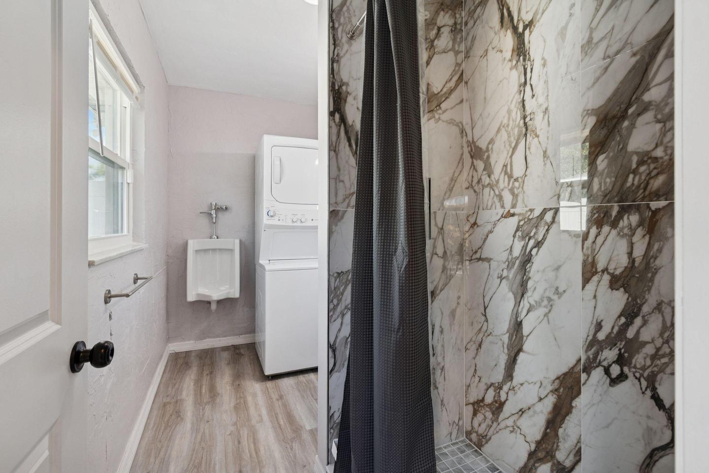 Move into a newly-renovated House today! Spacious and comfortable, this is the perfect place to call home. There are 4 bedrooms that are large and spacious, and 1 3/4 bathrooms. One bathroom (the full) has a new toilet, the other (the 3/4) is furnished with a new urinal (no toilet). They both have new sinks, one has a shower/tub, and the other has a spacious stand up shower. One thing that makes this space special, is that all the bedrooms are very spacious, have windows on at least 2 sides of the room, each with a bedside table with lamp, separate desk, rolling desk chair, small refrigerator, and a wall mounted television. The kitchen comes equipped with a fridge, sink, oven, stovetop, dishwasher, as well as a garbage disposal, making it the perfect spot to whip up a meal or two. There is a very large backyard with a table and chairs. The loop-style driveway offers parking for up to 3 cars without blocking any car in. The neighborhood is quiet, and you won’t be far from all St. Petersburg has to offer.