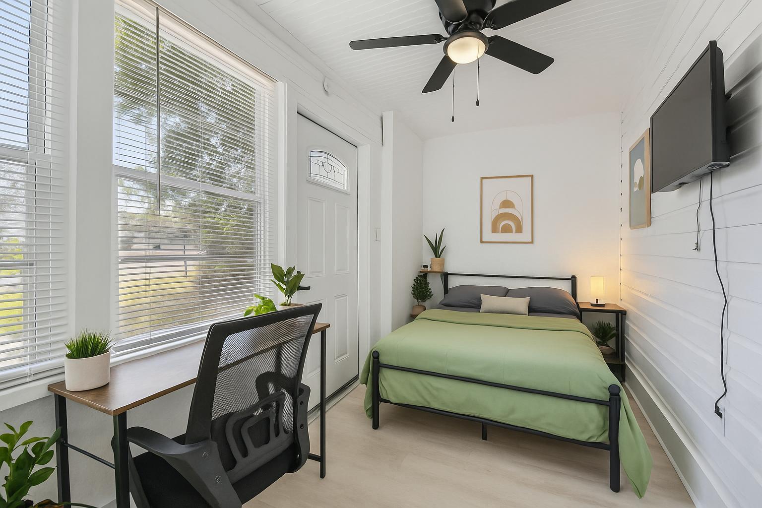 Welcome Home! We’re excited to invite you to experience modern living in this stunning, newly renovated home. This beautifully updated property is designed with your comfort in mind, offering a stylish and welcoming space you'll love to call home. All rooms feature a mini-fridge smart TV so you can watch your latest shows, Free Wifi, a workplace, as well as, queen sized bed! The kitchen is a chef’s dream, featuring upgraded appliances, including a fridge, sink, oven, and stovetop—perfect for preparing meals and creating memories.Property also features a free washer and dryer onsite for ease and convenience!