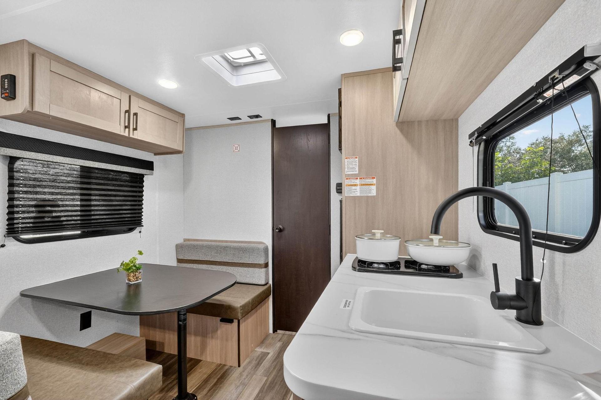 Your new home awaits! This modern Tampa RV is waiting for you. This NEW CAMPER has a Backyard, and it’s high-quality and comfortable. The kitchen comes equipped with a fridge, sink, stovetop, as well as upgraded appliances. The neighborhood is near grocery stores, which means you won’t be far from all Tampa has to offer.