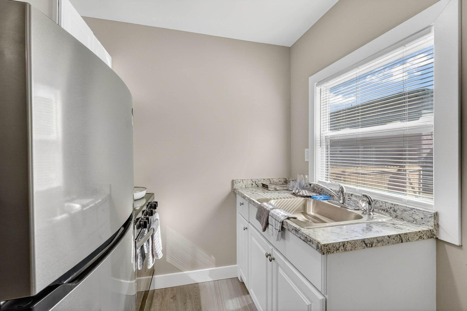 Enjoy living in a newly-renovated PRIVATE tiny home! This high-quality home is decorated with modern touches while providing the basic necessities. All that’s missing is you! This home is just for YOU, private entrance, yard, bathroom, and kitchen!! The kitchen is equipped with a fridge, sink, stovetop, as well as upgraded appliances. It’s the perfect spot for you to cook at home and save money. The surrounding location is near highways, making it the perfect place to call home.