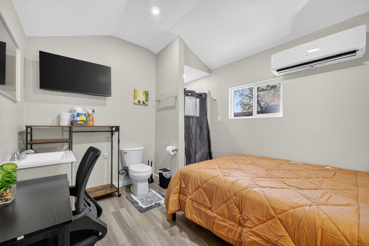 Move into a private studio ADU today! This unit comes with a private bathroom and room. Close to the laundry room and access to the kitchen in the main house. The kitchen comes equipped with a fridge, sink, oven, stovetop, as well as basic cookware, making it the perfect spot to whip up a meal or two. The neighborhood is close to public transit, and you won’t be far from all Tampa has to offer.