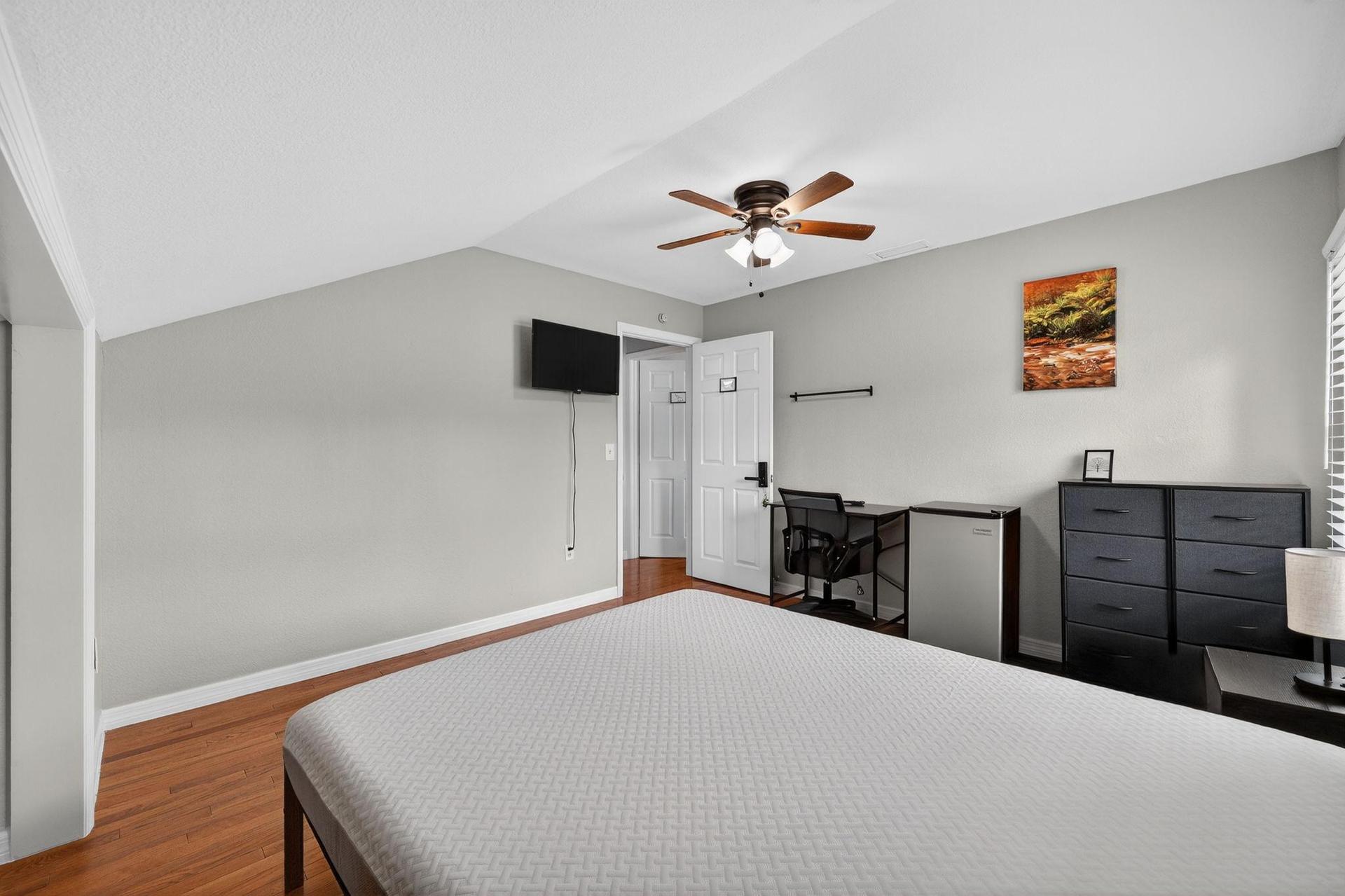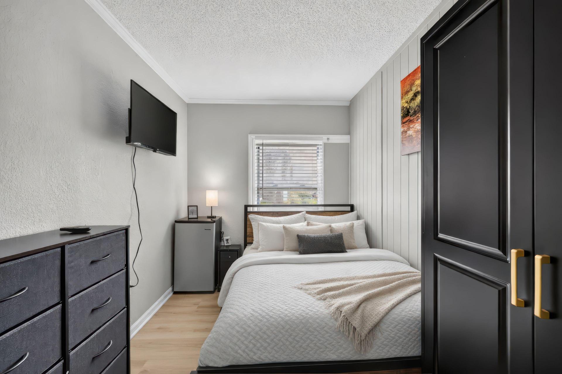 📺 Smart TV ❄️ Minifridge 💼 Work desk & chair 👗 Armoire 🌐 Free fast WiFi & utilities included 🔒 Smart lock 🛁 Towel bar ❄️ Central AC 🍽️ Plates and utensils provided 🧺 Laundry in house 🧹 Professional Cleaning