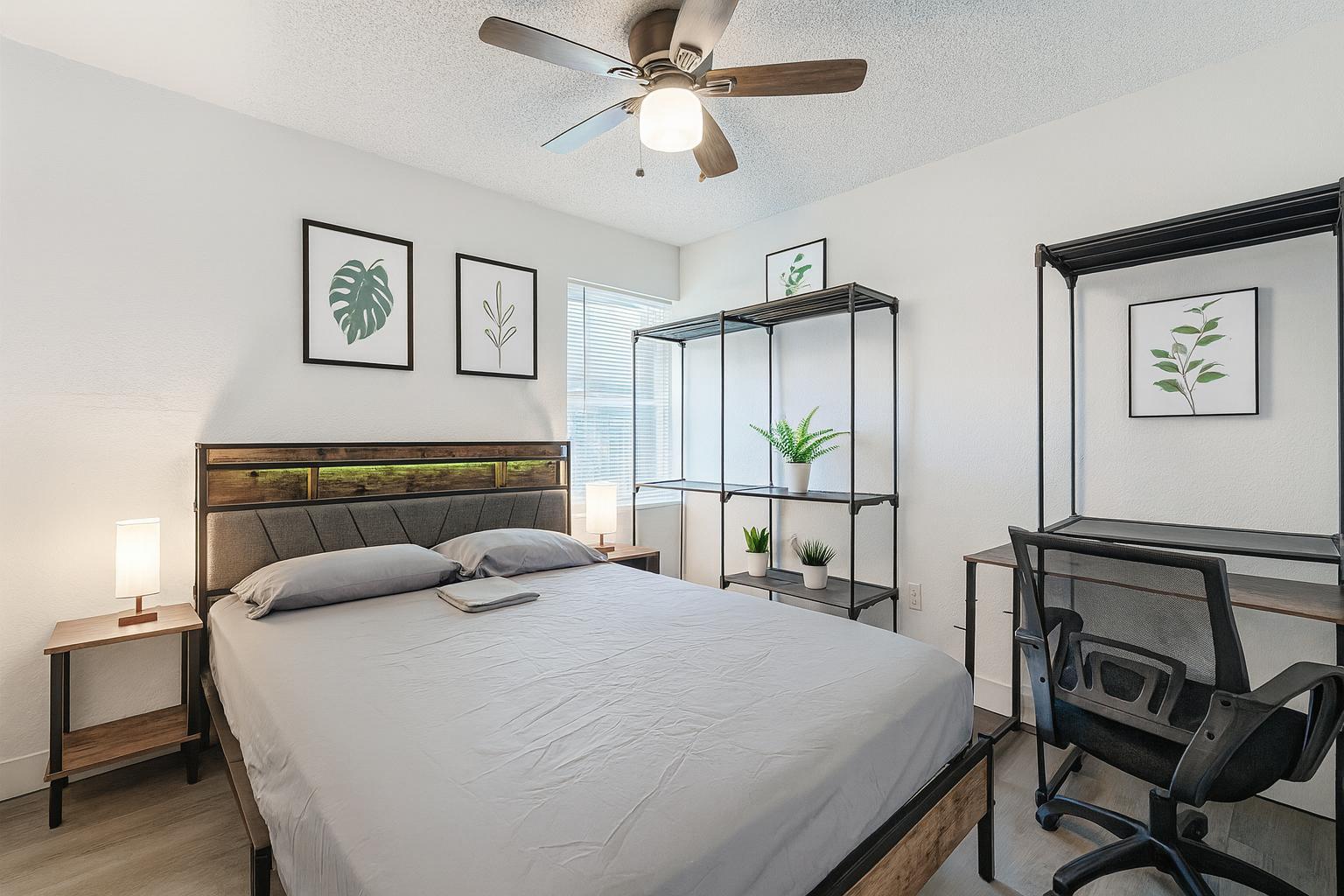 What can I bring?Room includes wardrobe, smart TV, and workspace