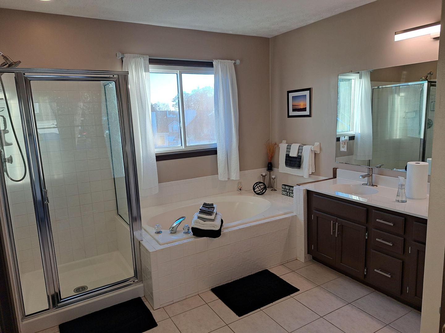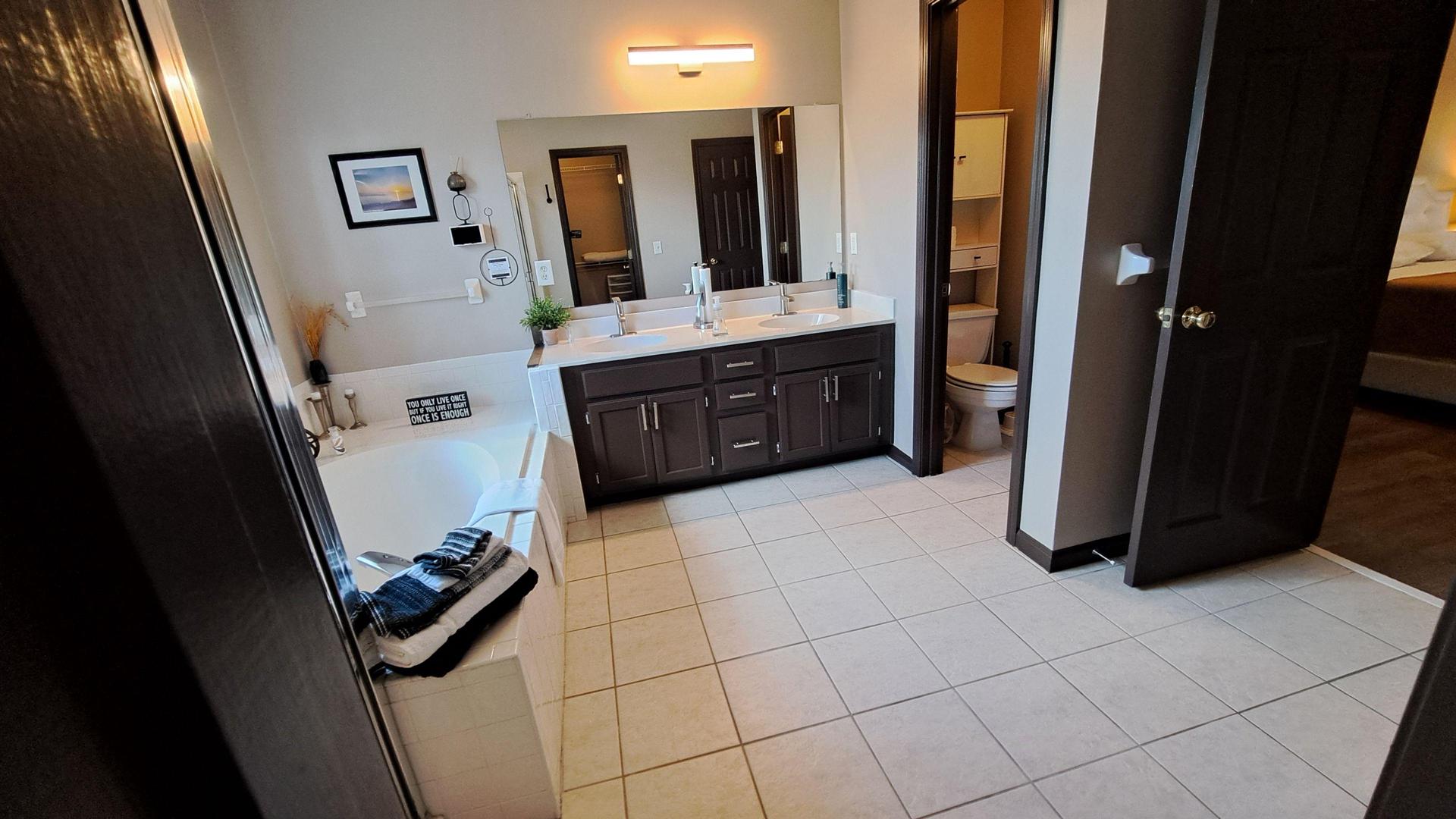 Forget your worries in this serene space. Bedroom is large with L-Desk & electric fireplace. Attached private bathroom with soaking tub, separate shower, water closet, and 2 closets. People friendly & safe neighborhood. To look at your options, we have 3 other bedrooms in this same house. Check out our profile for more information on our other listings. Close to Pleasant Hill Rd, I-85, Hwy 316, Ronald Reagan Pkwy, Sugarloaf Pkwy, restaurants, shopping, & entertainment. Come enjoy a seat on the Wood Deck, Extended Rear Patio, or shoot hoops on the private Basketball Court in the back yard. Please clean up after yourself. *** No extra visitors are allowed that are not registered & paid Guests thru PadSplit without prior approval. 1 Extra Guest allowed - Fee $100 per week. For Security Purposes, NO 3rd Party Check-Ins Allowed. No Smoking/Vaping of any kind. No pets except Service and Emotional Support Animals that have been registered with PadSplit. NO Loud Music, Quiet hours 11 PM-8AM. *Larry C Neal Jr, Assoc RE Broker, GA Lic #219352
