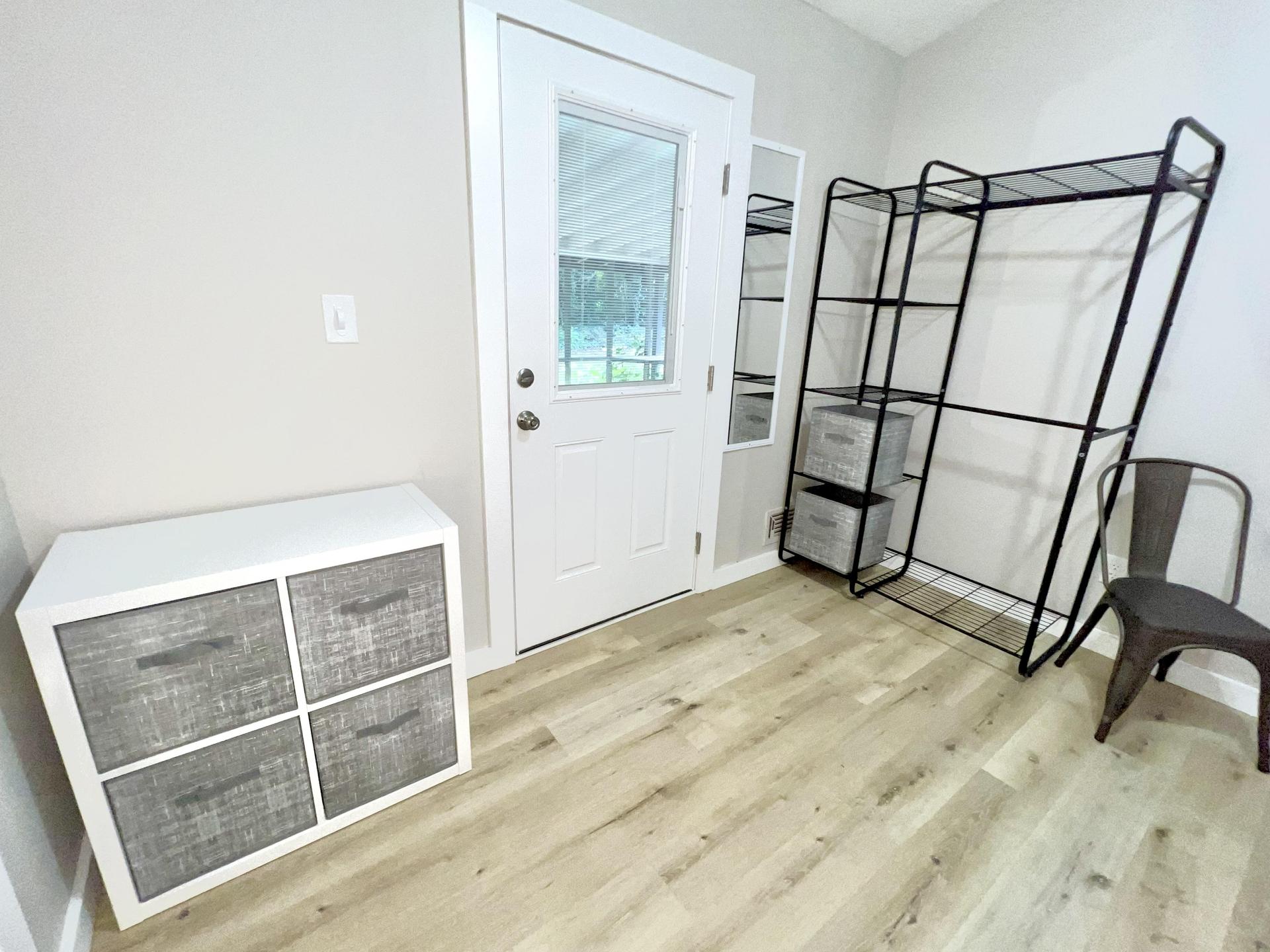 What can I bring?This room features access to a covered porch, spacious high ceilings, ceiling fan, workspace, nightstand and a Linenspa hybrid (memory foam and spring) mattress. Enjoy a morning coffee on the back porch in this peaceful and quiet neighborhood.