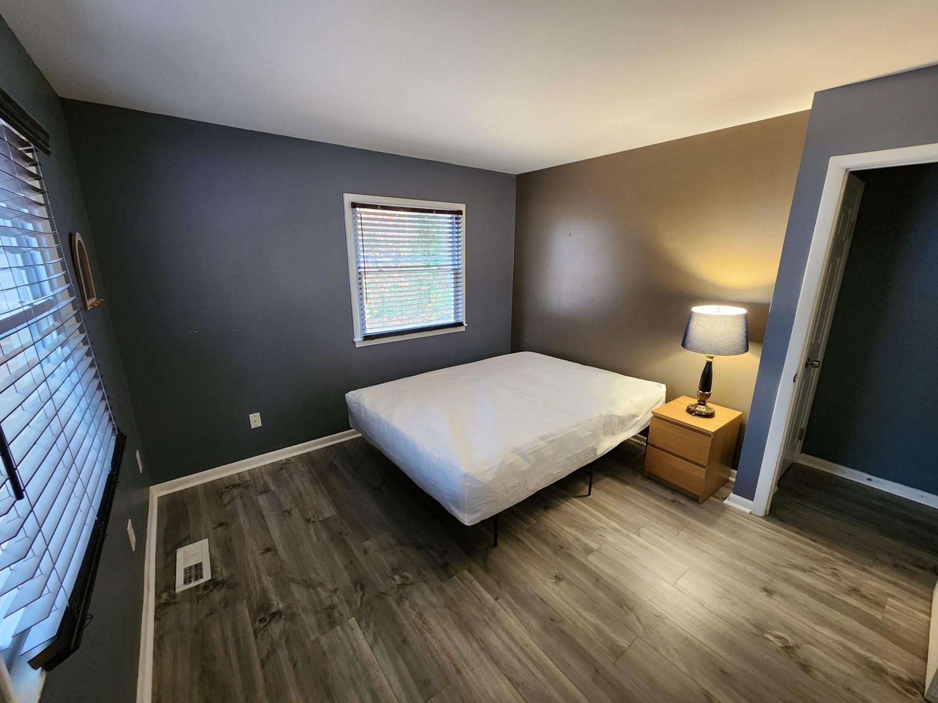 This is a large room with 2 windows that let in lots of natural light. A TV mount is already installed for a flat screen TV up to 60 inches. The room is clean with new flooring. The neighborhood is quiet and walkable.