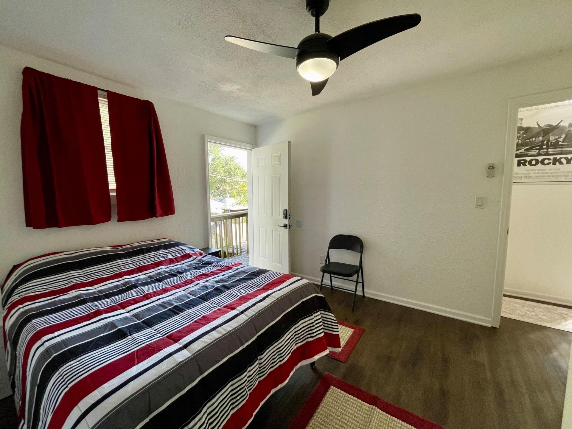 What can I bring?This is the largest room in the home. It has private separate entrance from the back, its own balcony with staircase, and off-street parking behind the home via the alley.