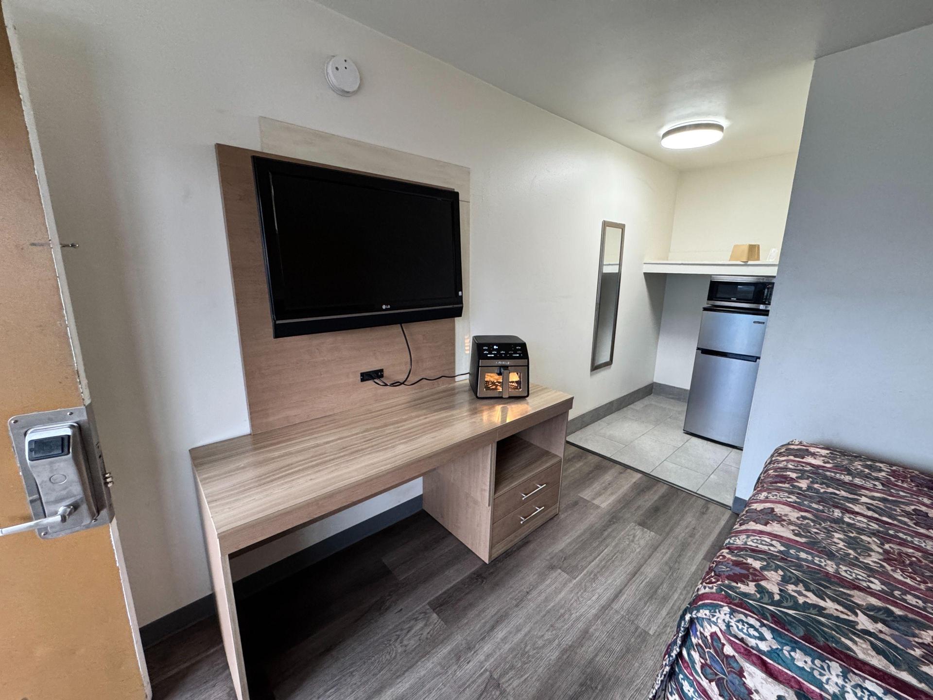 This is a cozy local motel that rents out rooms by the week. We’ve got private rooms with bathroom for you, plus complimentary TV cable, WiFi, room service, and more! Plus, we’ve got an onsite laundry facility and vending machines Snacks and Ice.