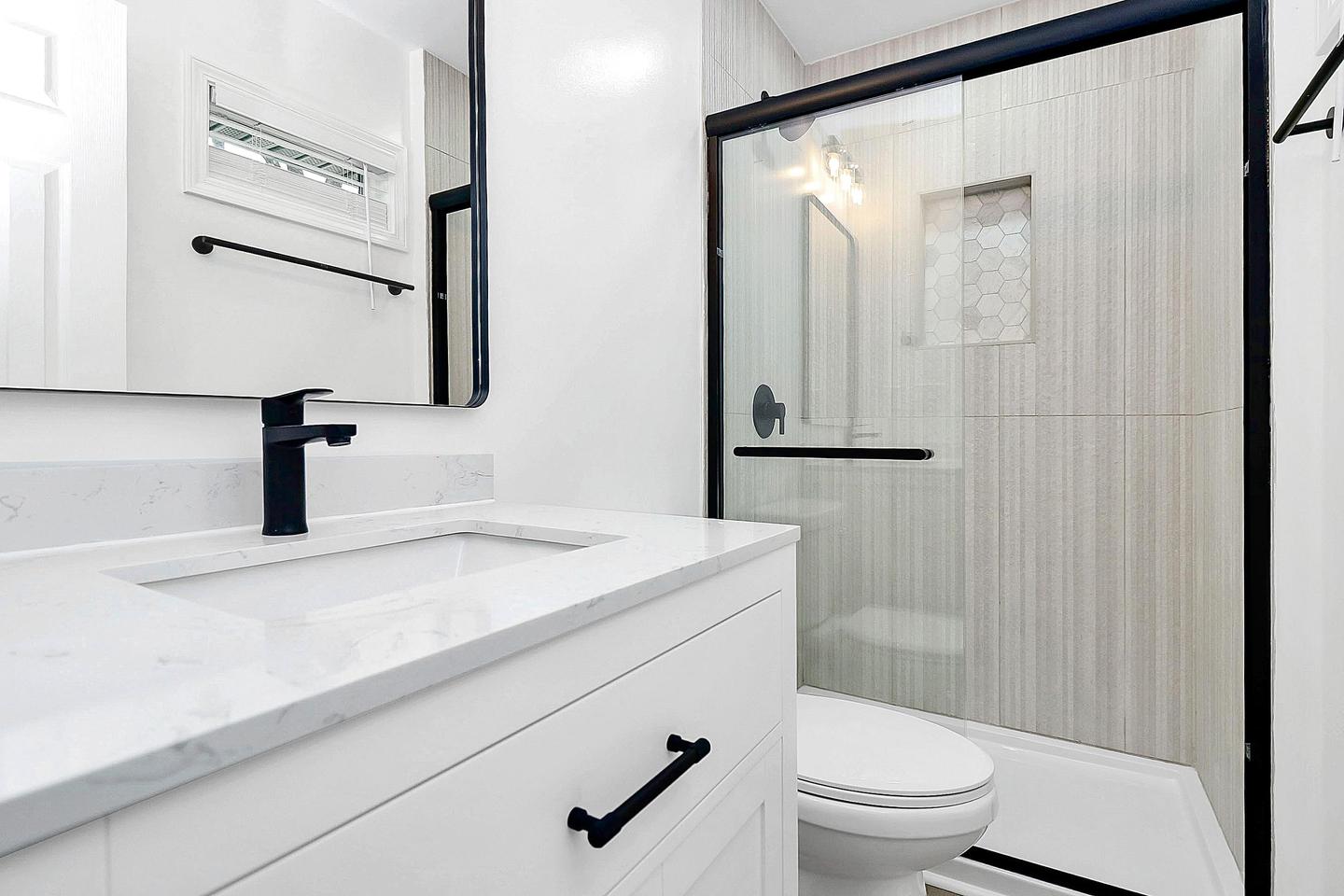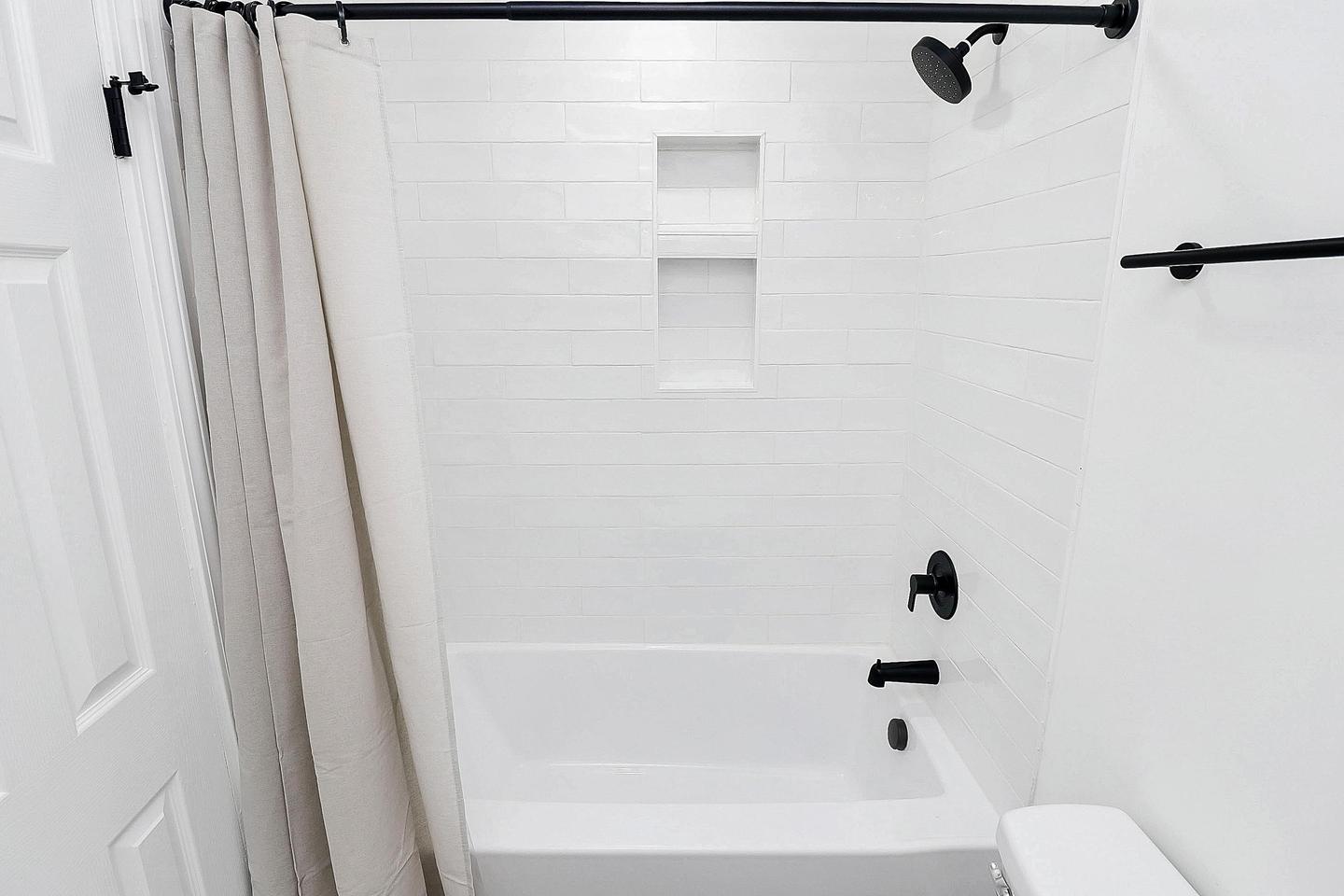 Your new home awaits! This modern, newly-renovated Charlotte home offers comfort, convenience, and style. Enjoy a fully equipped kitchen with a fridge, oven, stovetop, sink, and a private mini-fridge in every bedroom. Two bedrooms feature private en-suite bathrooms, while the other two share a spacious bath. Each room is furnished with sleek, modern furniture, and the home includes a washer and dryer for your convenience. Relax on the patio or take advantage of the dedicated workspace. Located near public transit, you’ll have easy access to everything Charlotte has to offer. Plenty of parking is available both on the street and in the oversized driveway. Don’t miss your chance to call this beautiful space home!