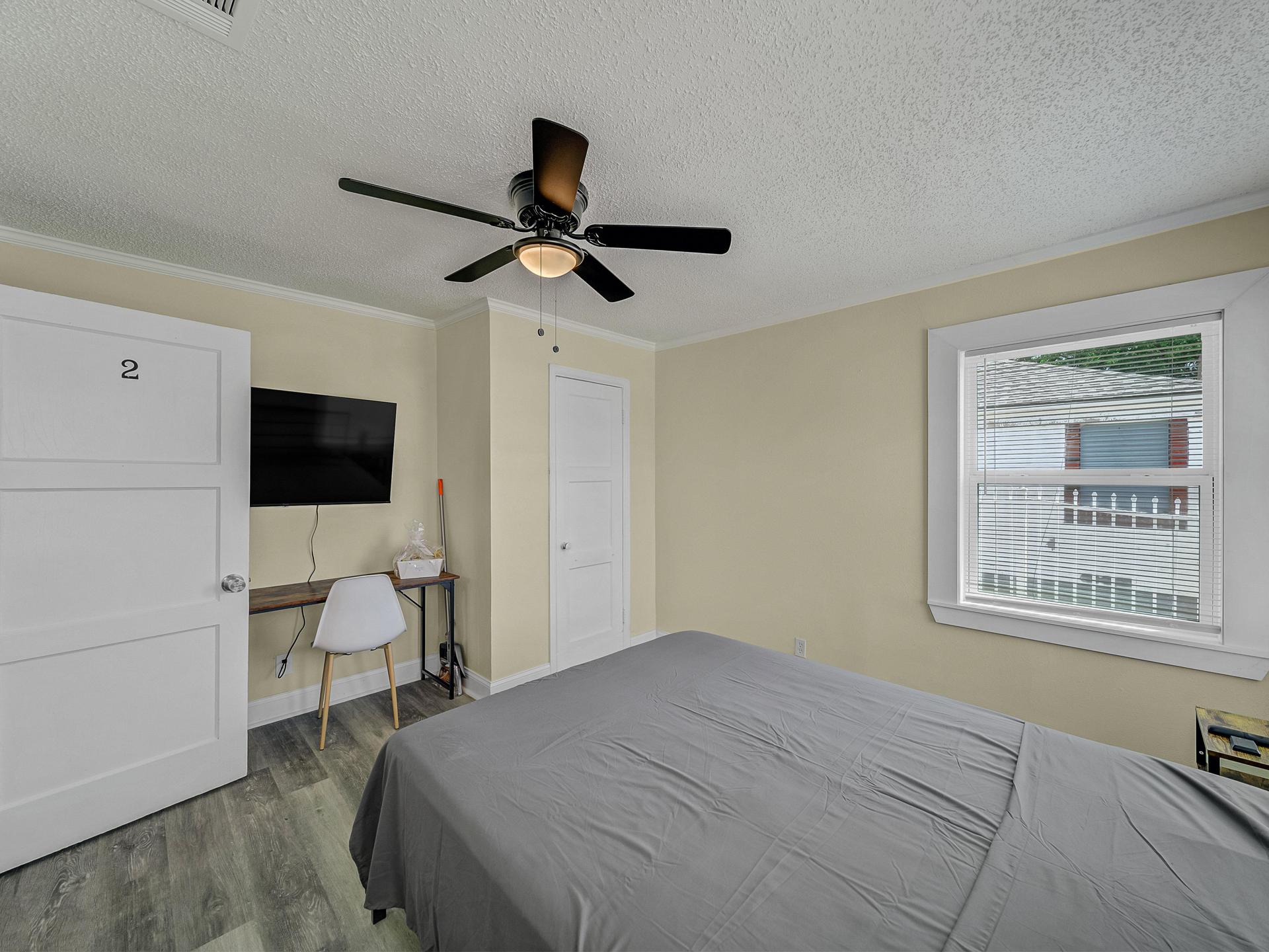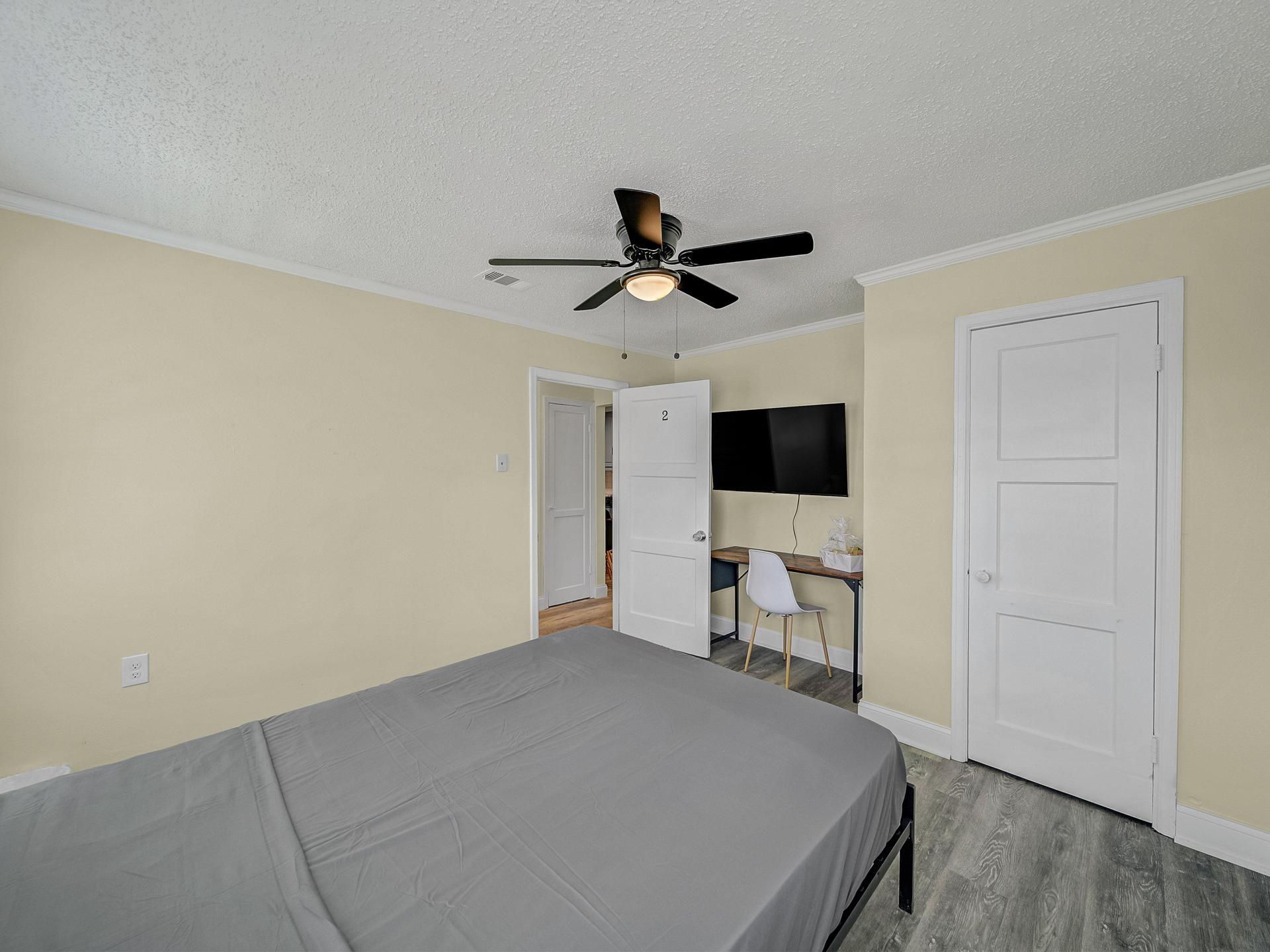 What can I bring?Welcome to room #2, a pretty spacious room that has everything you need! The room includes a queen bed, an amazing reach-in closet with great space,a private working desk and a TV