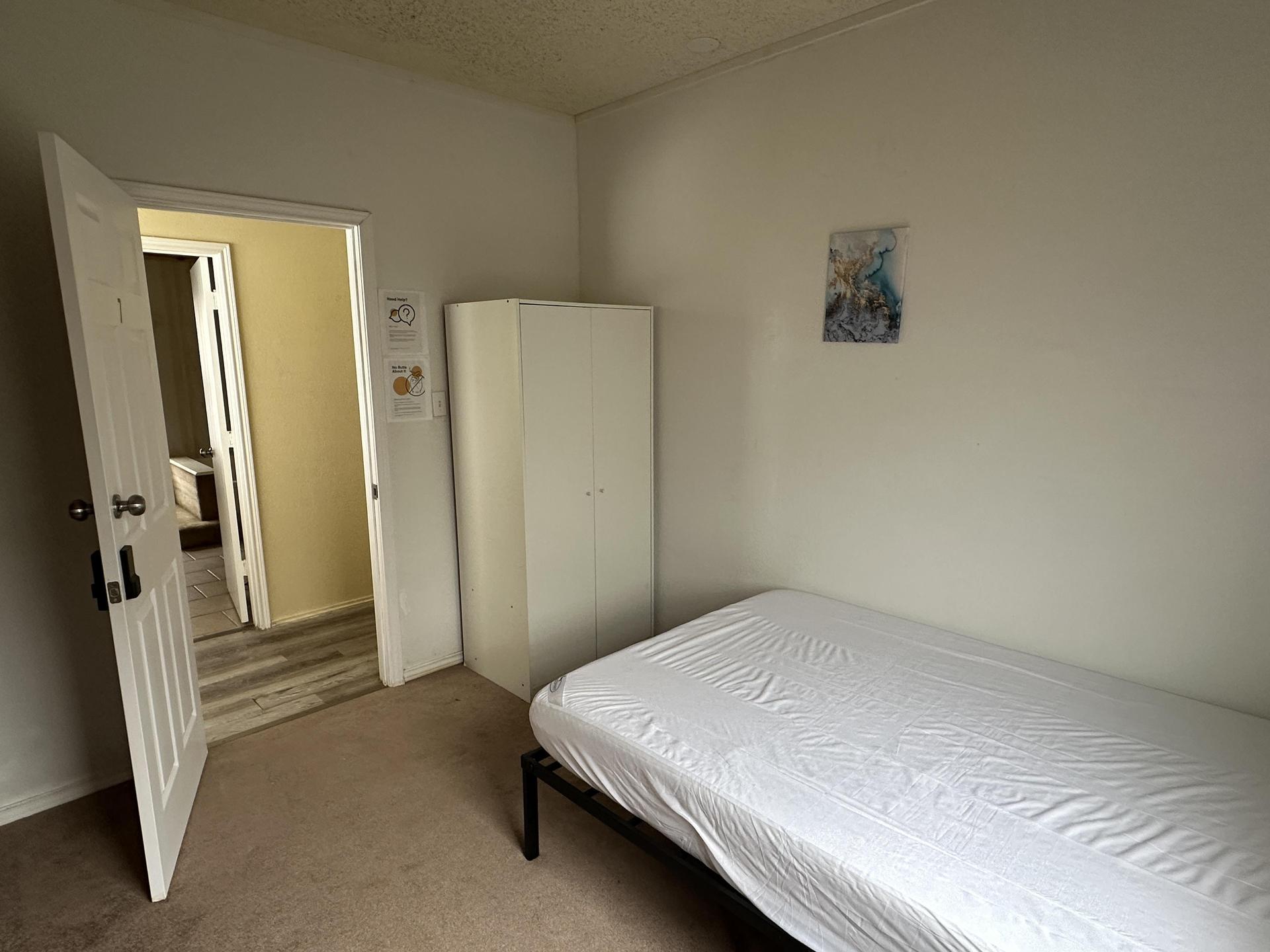 What can I bring?Standard bedroom featuring a comfortable full-size bed, a bedside table with lamp, and a wardrobe. A private retreat in a quiet home, perfect for restful nights.