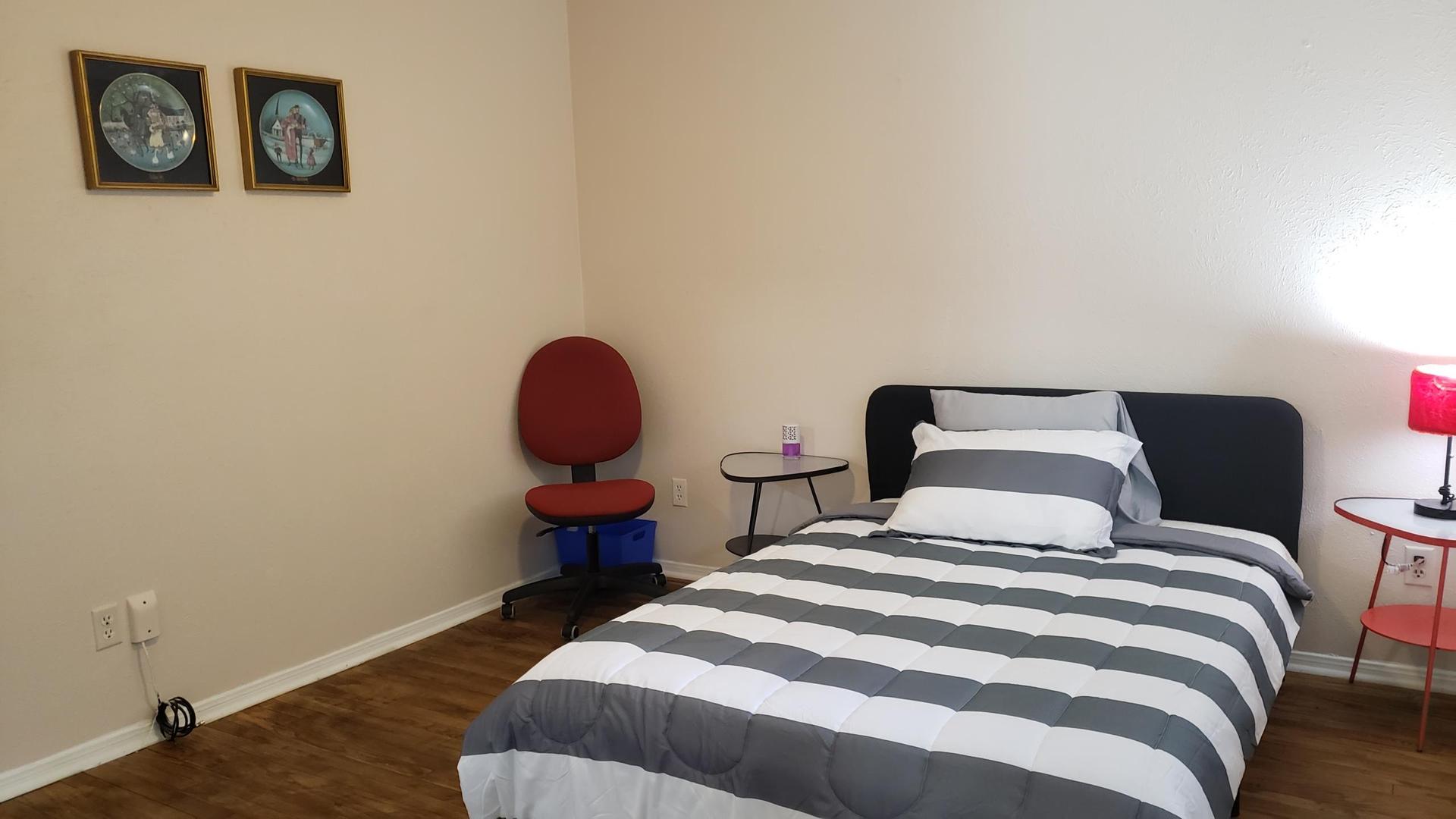 Your new home awaits! This spacious Houston home is waiting for you. This PadSplit has a Dining and Living area, and it’s homey and comfortable. The spacious, fenced-in backyard offer space to relax after work or on weekends. The kitchen comes equipped with a fridge, sink, oven, stovetop, microwave, as well as dishwasher. The utility room has a pair of new washer and dryer for members to use free of charge. The home has a total 3.5 baths with one bedroom has a private bath (if you prefer). The house and all rooms are secured by keyless, digital locks. Free wifi for easy, fast internet access. Exterior cameras and motion-sensor floodlight for added security. Plenty of parking on driveway and on the street (if necessary). The quiet neighborhood is near highways and public transportation. Walmart, Aldi, restaurants, fast food, gas stations, and other amenities are within 1.5 miles away.
