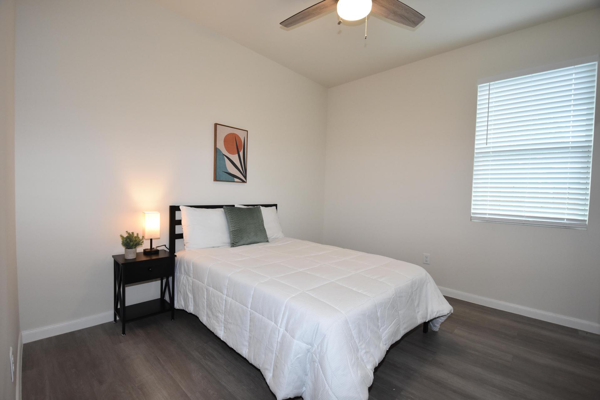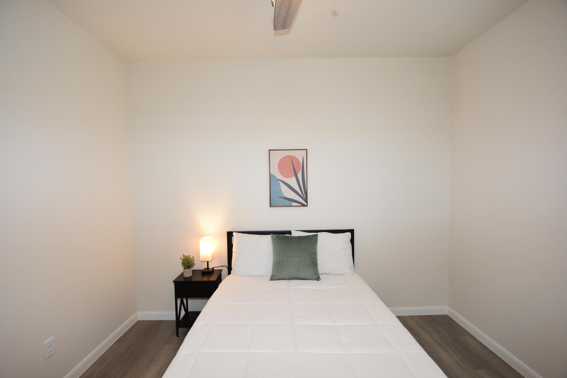 Spacious bedroom with private bathroom.
