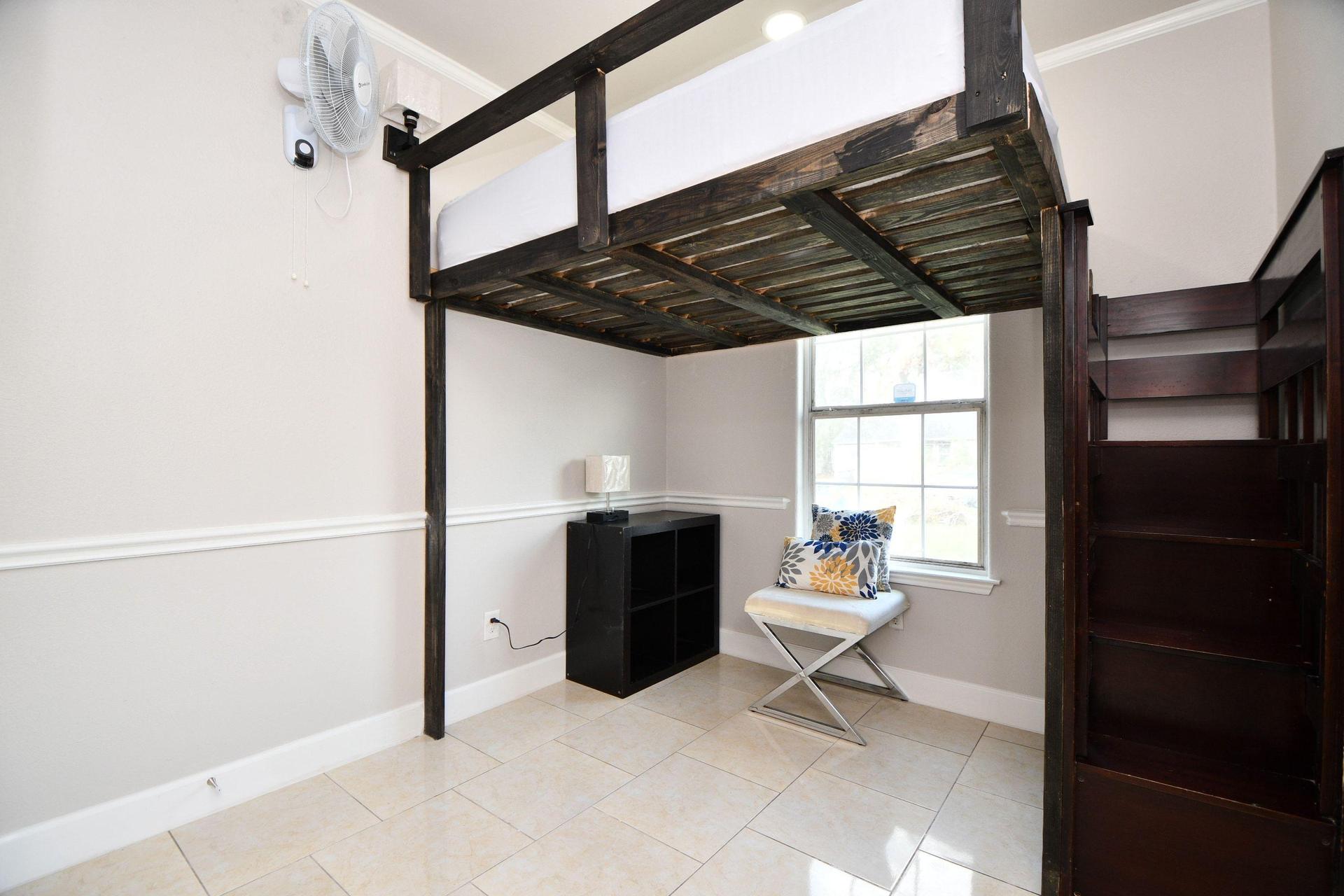 Lofted Room! Enjoy the whole space having the bed above!